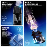 New Vuse Pods bring an all-new satisfying design with the most intense flavour yet. A sleek ceramic vape cartridge with our upgraded e-liquid formulation, this 2mL pod has more puffs than ever: now featuring up to 2000 puffs* per pack.